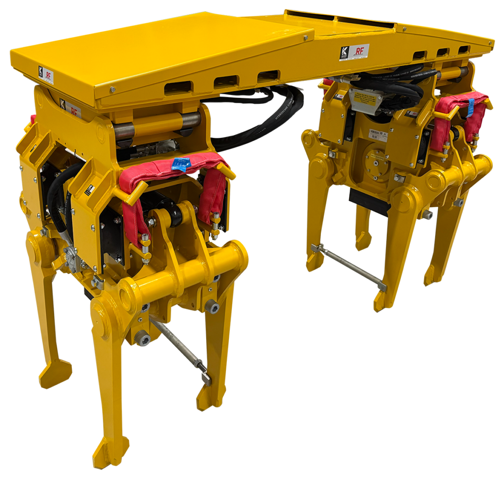 The lower hitches are adjustable, allowing the double tamper to be adapted to different track gauges.