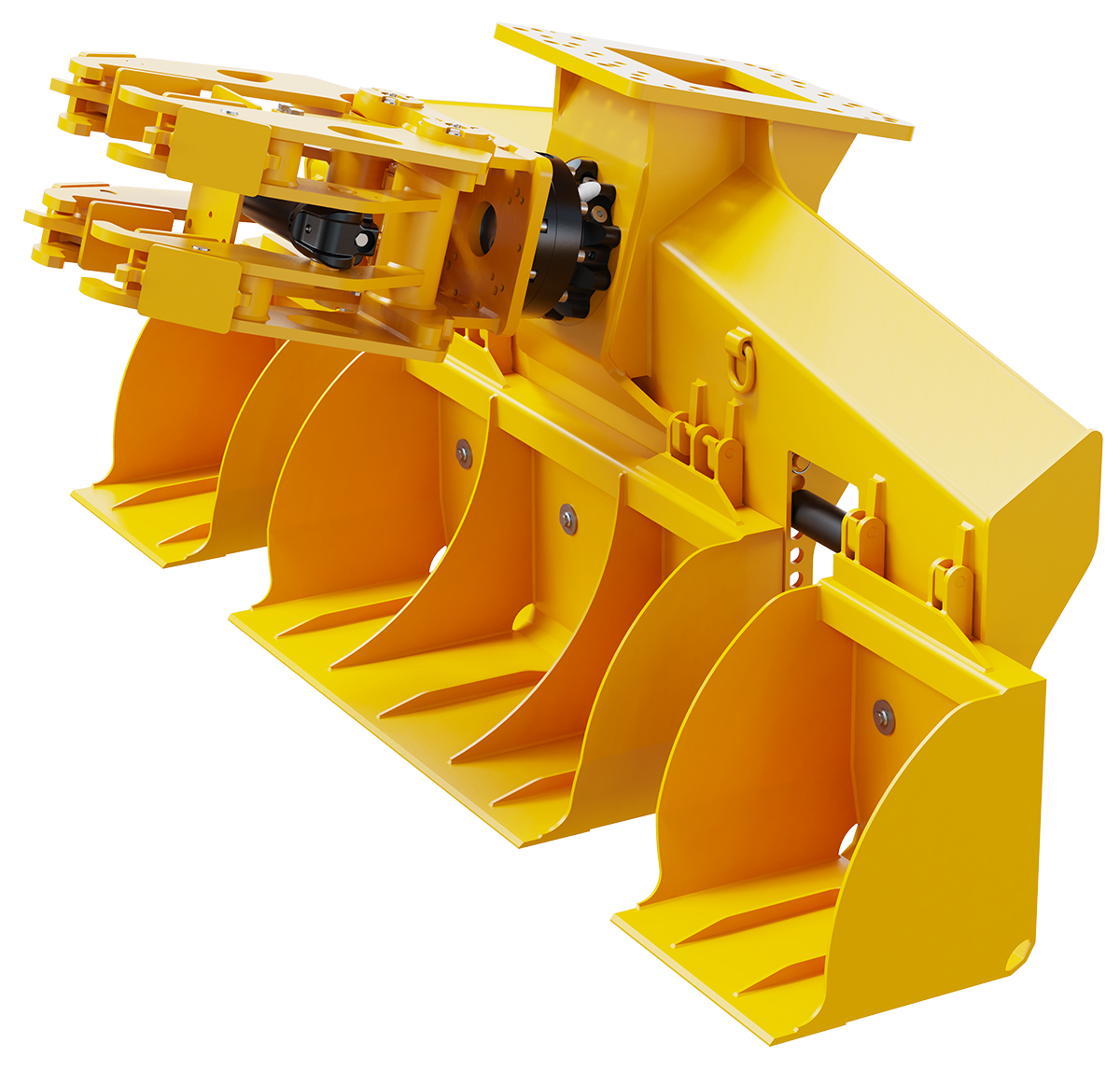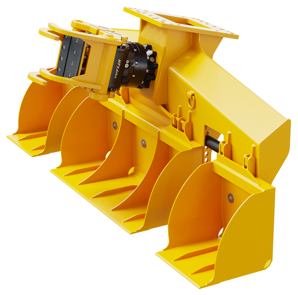 HPX cylinderless grapple drive unit and bolt-on ballast buckets