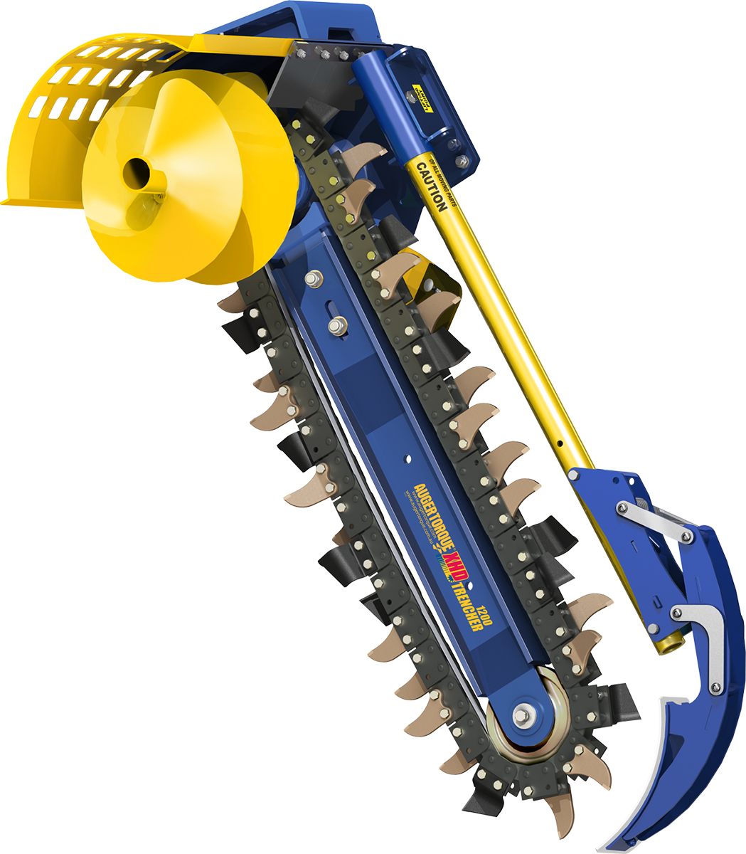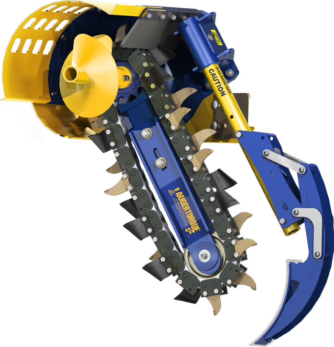 Kedjegrävare till grävmaskin från Auger Torque ger ett snyggt och smalt kabelschakt med schaktmassor som är söndermalda och lätta att återfylla.