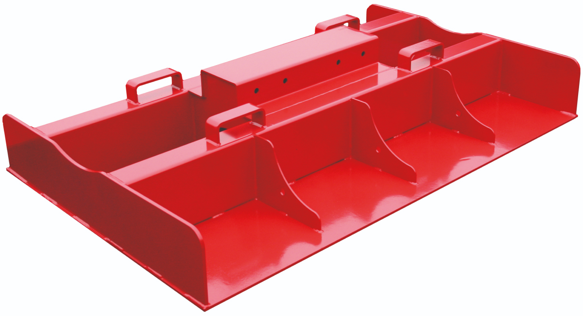 Undersida i Hardox 450 samt slitribbor i Borox 500. Tillgänglig i flera bredder och bultade maskinfästen. Standardutrustad med gaffelfickor för enkel förflyttning av balk med gafflar.