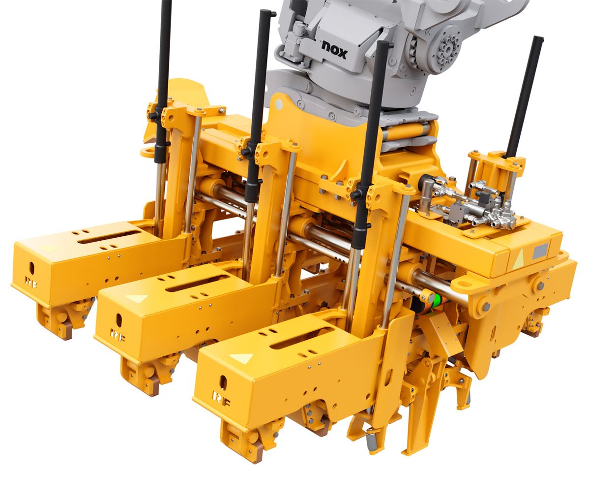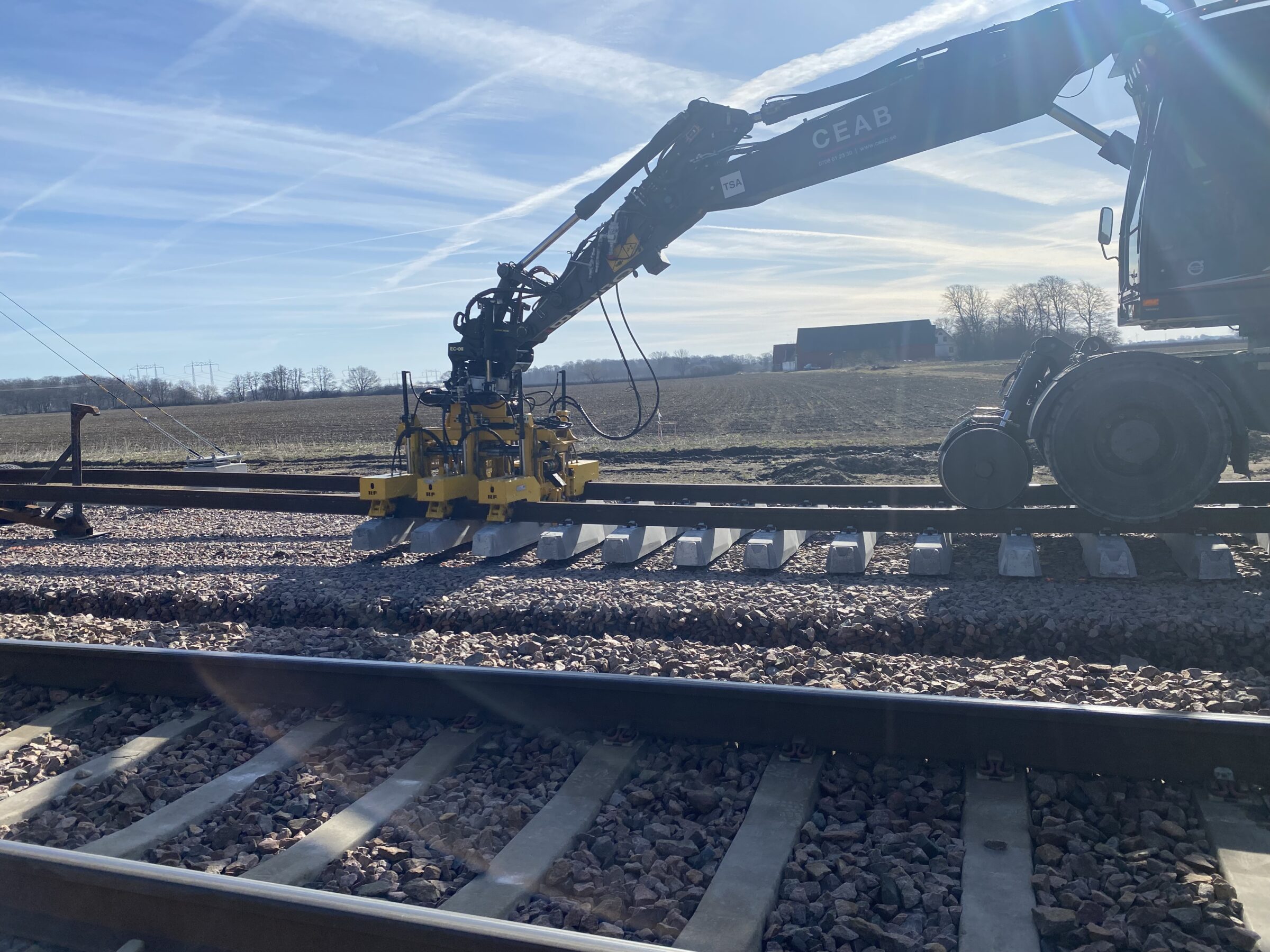 Järnvägsbyggnadskonceptet består av: Rälslyft på hjul RLF, Slipersutläggare med befästningsmodul RUS33 CLF (Fastclip FE/FC, 50–60 kg räl), samt Slipersvagn SLF för transport av slipers.