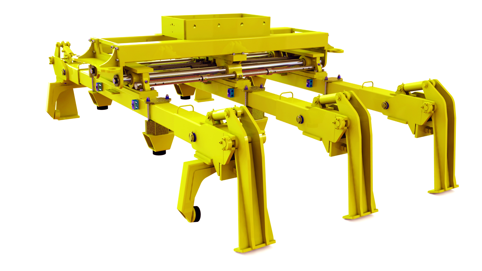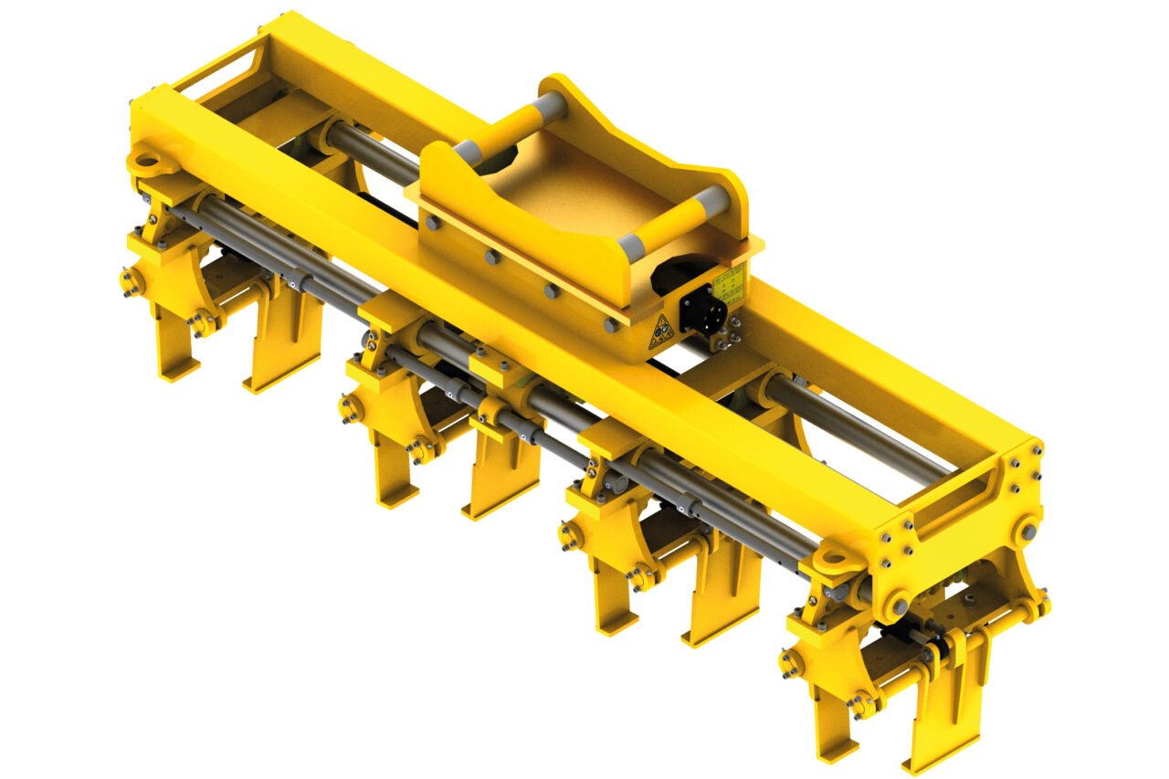 Den mittgreppande RUS modellen används för traditionell slipersläggning eller under befintlig räls (3-armad) och kan även beställas med offcenterhämtning för att kunna plocka slipers direkt från gafflar. Finns med 3, 4, 5 eller 6 armar.