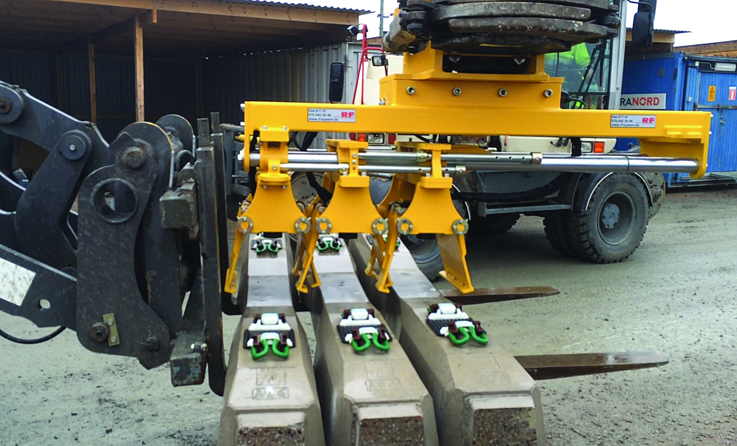 Kortsidegreppande RUS kan plocka alla typer av trä- eller betongslipers även om de inte ligger med mellanrum. Finns med 3, 4, 5 eller 6 armar.